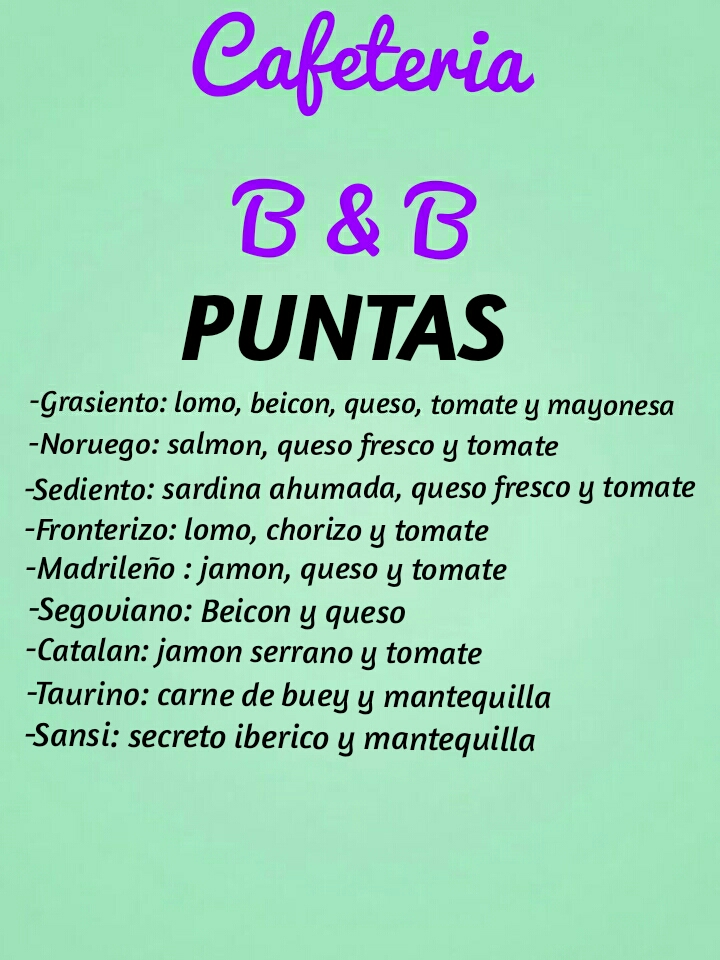 Cafetería B&B Menu